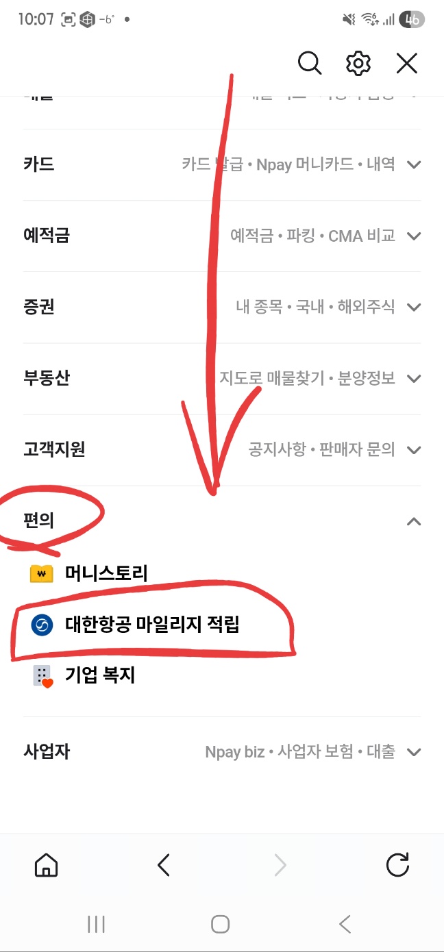 네이버페이 포인트를 대한항공 마일리지로 전환 방법