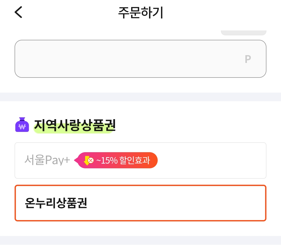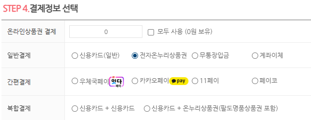 결제창에서 이런식으로 뜨면 온누리 상품권 사용이 가능하고,