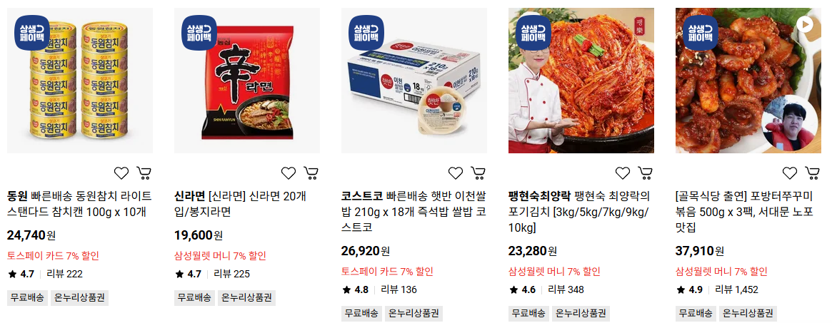 아래쪽에 온누리상품권이라고 적힌 물건들 구매 가능합니다.