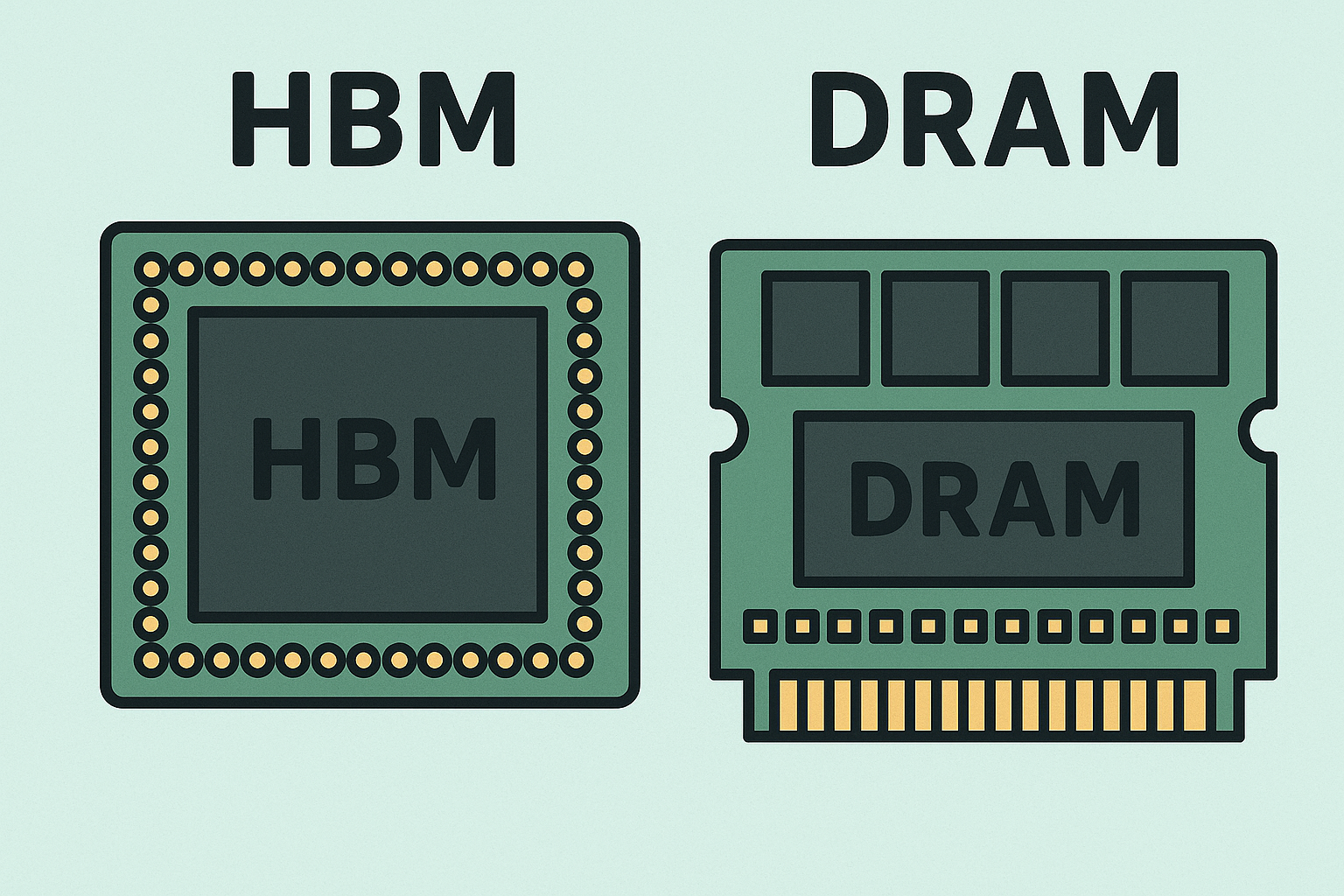 HBM은 기존 D램 대비 월등한 대역폭을 제공하는 적층형 메모리로, GPU 옆에 8단·12단 형태로 쌓여 동작합니다. AI 모델 학습 과정에서 데이터 병목을 줄이고, 초고속 처리 성능을 지원하기 때문에 엔비디아의 H100, B100, 차세대 가속기까지 모두 HBM을 채택하고 있습니다.